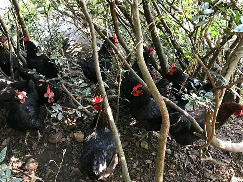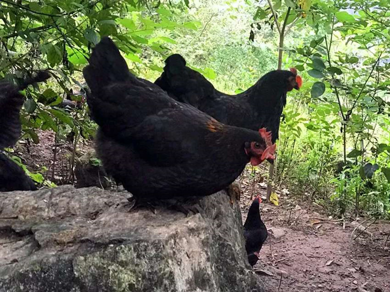 在良好的生態環境中,石門土雞飲山泉,吃玉米,食野草,啄百蟲,山水滋潤,自然散養,能吃能跑,能爬能飛,被石門土家人譽為大山里的“黑鳳凰”。