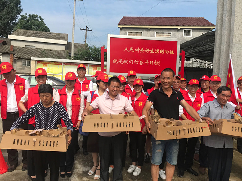 湘佳牧業和前進律師事務所黨支部舉辦了“獻愛心”活動,為該村5位烈士后代和貧困戶每戶發送了500元慰問金和30只石門土雞雞苗。